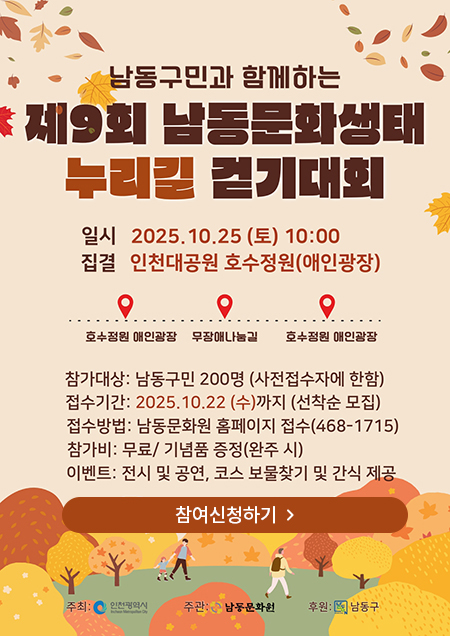 2025년 제9회 남동문화생태누리길 걷기대회 자원봉사자 모집